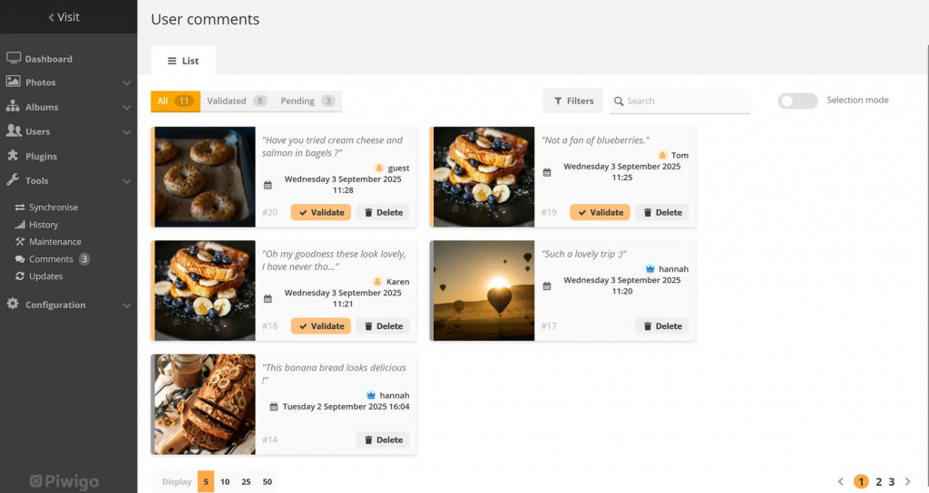 The new layout makes it easier to distinguish comments that are still pending approval from those that have already been validated. A selection mode also makes it easier to process comments in bulk.