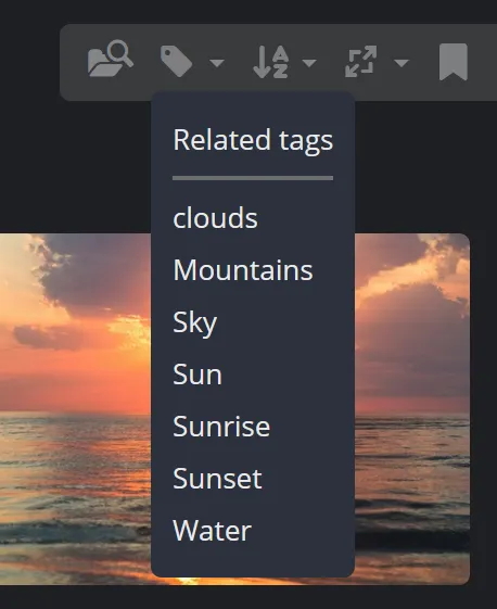 On all thumbnail pages, you’ll also find a dropdown menu for related tags in the batch actions area (on the right-hand side when using the Modus theme).