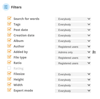 With Piwigo 16, administrators can now choose which filters are enabled by default.