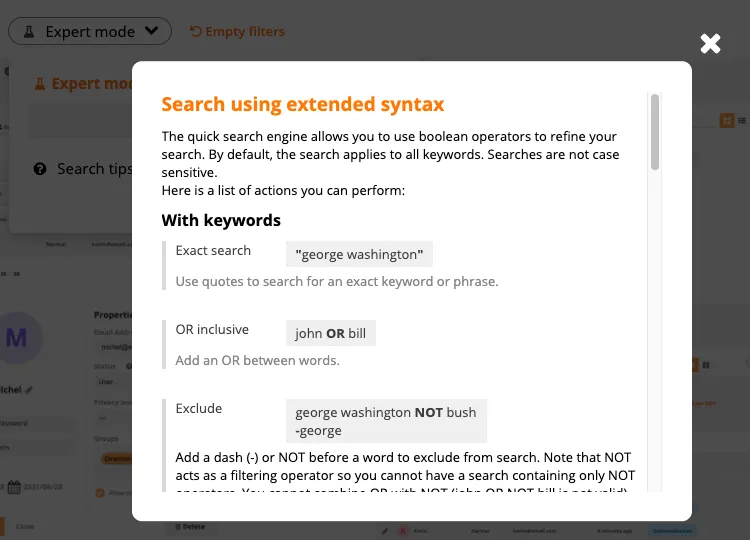 Another improvement to gallery search: you can now enable Expert mode, which allows you to refine your search by excluding words, searching for exact matches, and using many other advanced options.